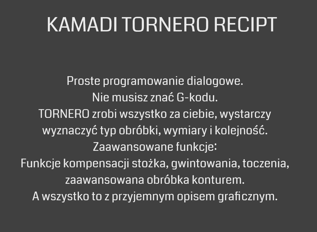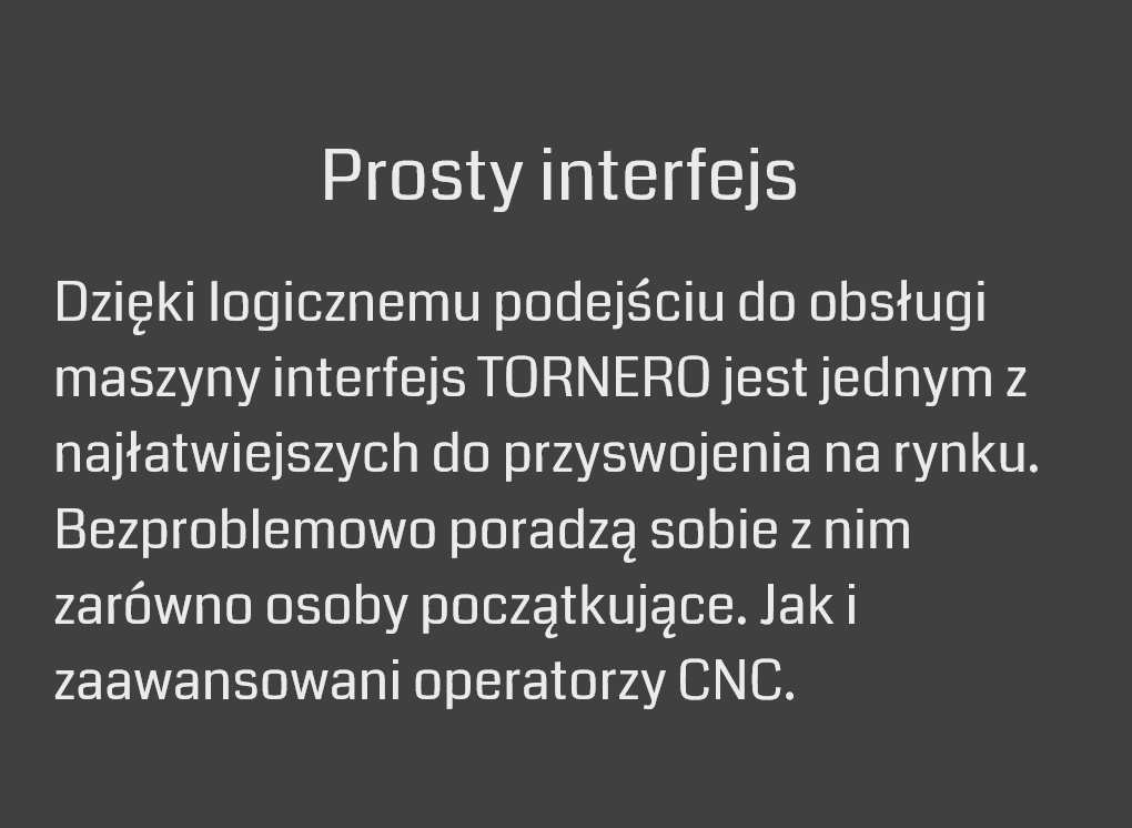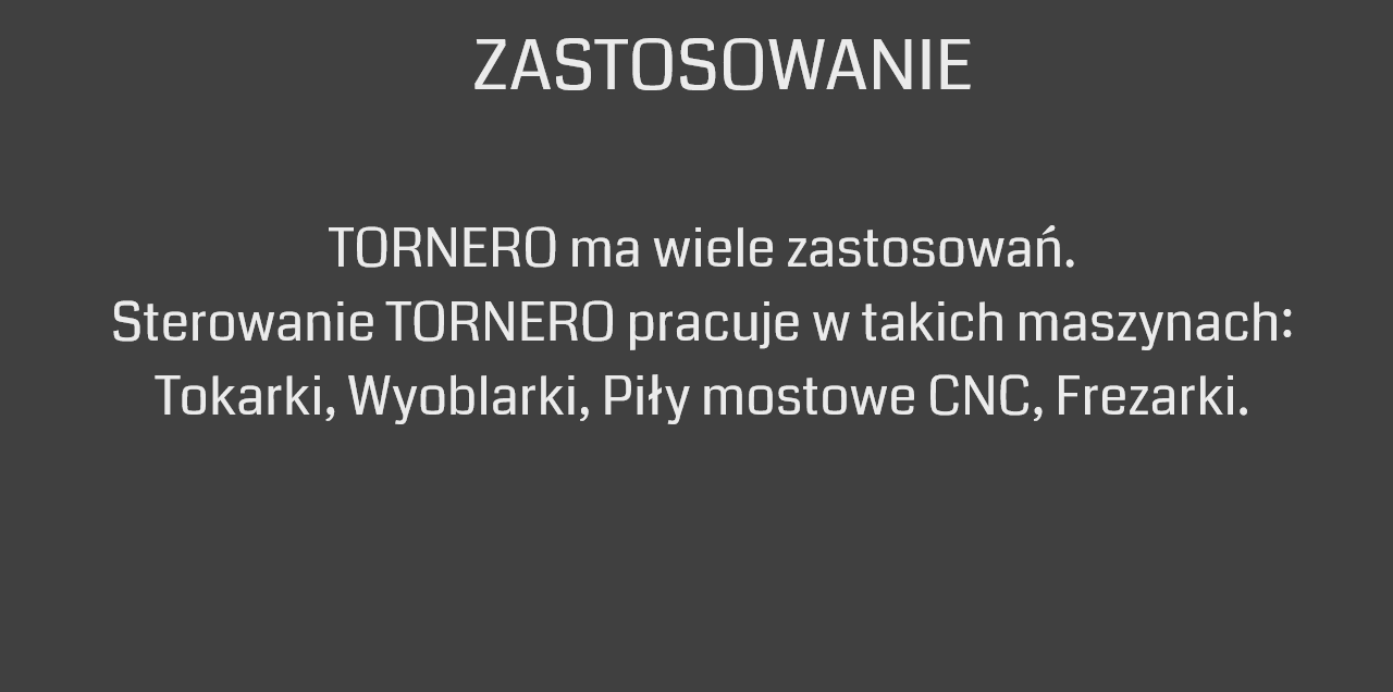 Jest to nowoczesny system sterowania dla maszyn CNC. Oferuje najwyższą prędkość, powtarzalność i precyzję. Jest to system bezkompromisowy. Preferowany dla systemów sterownia TORNERO. |